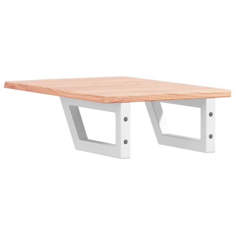 Стенният рафт за мивка се прикрепя сигурно към стената, осигурявайки елегантно и спестяващо място решение за вашата баня. Здрав и дълготраен: Този рафт за мивка е комбиниран със стоманена конструкция и плот от масивна дъбова дървесина, което го прави здрав, стабилен и дълготраен.Спестяване на място: Плаващият рафт за мивка има достатъчно място за съхранение на кремове и дребни предмети. Благодарение на трапецовидната форма можете да закачите кърпи или други неща на опората, за да спестите място.Лесен за използване: Плотът се доставя без дупки, за да позволи на мивката да се монтира отляво, отдясно или в центъра, в зависимост от изискванията на вашето помещение. Благодарение на предварително пробитите отвори в държача, той може лесно да се сглоби с плота и да се монтира на стената.Широки приложения: Благодарение на модерния си дизайн, осигурява допълнително пространство за различни видове бани. Добре е да се знае:Винтовете не са включени, можете да закупите винтовете отделно въз основа на информацията, предоставена по-долу.Прикрепване към стена: 2 бр дюбели M8 на скобаДървен плот: 2 бр M5x18 винта (T=2) или 2 бр M5x20 винта (T=2,5/4 см) на скобаКато естествен продукт, дървото може да има възли и несъвършенства, които ние запълваме с черни пълнежи, за да осигурим гладък външен вид.