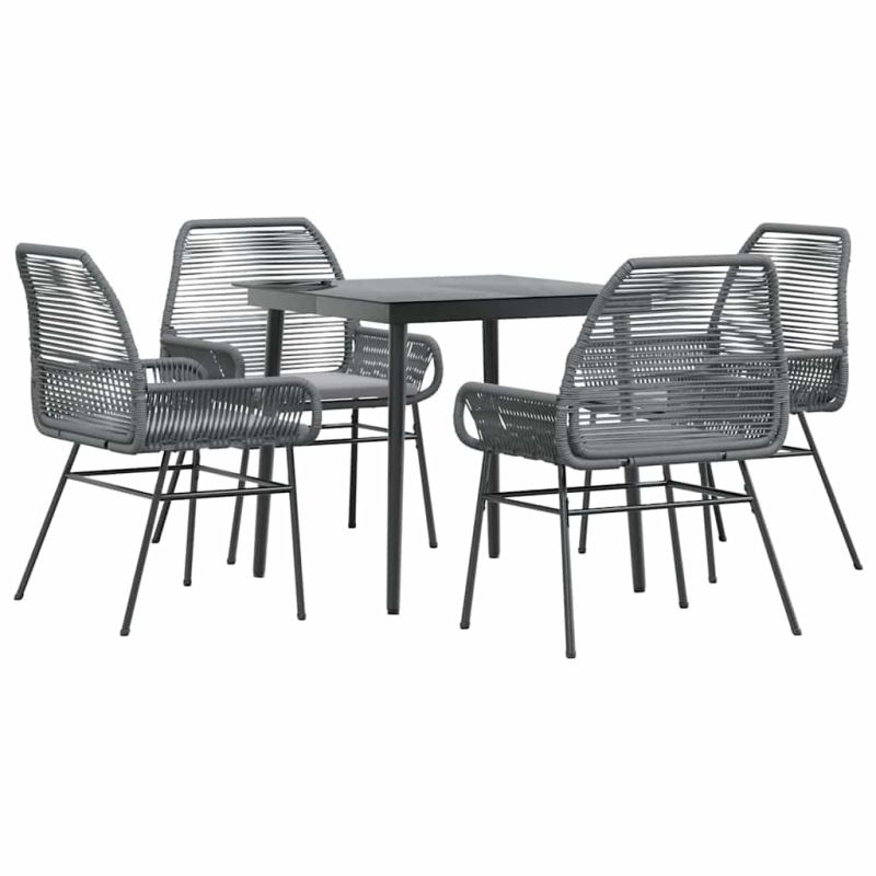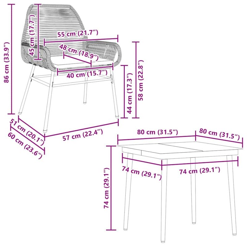 Този градински трапезен комплект е чудесен избор за вечеря на открито или просто за почивка в градината, задния двор или във вътрешния двор. Издръжлив материал: PE ратан, известен също като полиратан, е здрав синтетичен материал с малко необходима поддръжка, който прилича на естествен ратан. Той е лек, лесен за почистване и често се използва за външни мебели поради своята издръжливост и устойчивост на атмосферни влияния.Здрава и стабилна рамка: Прахово боядисаната стоманена рамка е здрава, стабилна, издръжлива и устойчива на корозия и неблагоприятни атмосферни условия, което гарантира дълготрайна експлоатация.Практична облегалка и подлакътник: Този градински стол разполага с облегалка и два подлакътника, които предлагат оптимална опора и комфорт за потребителите.Калъф, който може да се сваля и може да се пере: Тези възглавници за седалки имат подвижни калъфи за лесно пране и поддръжка.Стъклен плот: Плотът на външната маса е изработен от здраво и издръжливо закалено стъкло, което улеснява почистването с влажна кърпа и добавя нотка елегантност към вашето външно пространство. Добре е да се знае:За да сте сигурни, че вашите външни мебели ще останат красиви, ви препоръчваме да ги защитите с водоустойчиво покривало. Максимално 110 кг на седалка. Съобразете се с риска от открит огън и други източници на силна топлина в близост до продукта.