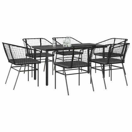 Градински комплект 7 части с възглавници черен полиратан стъкло