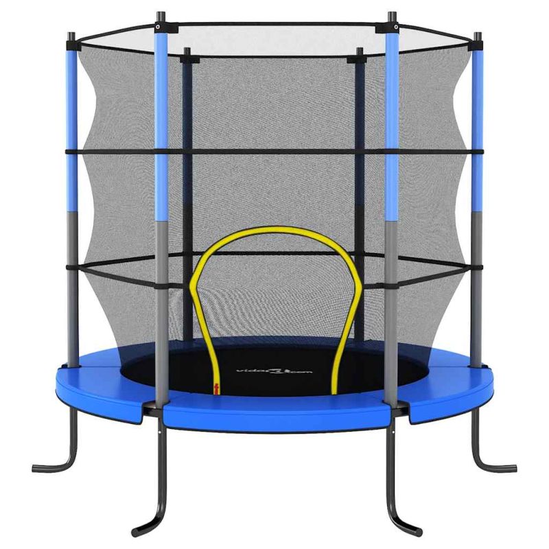 Батут със защитна мрежа, кръгъл, 140x160 см, син