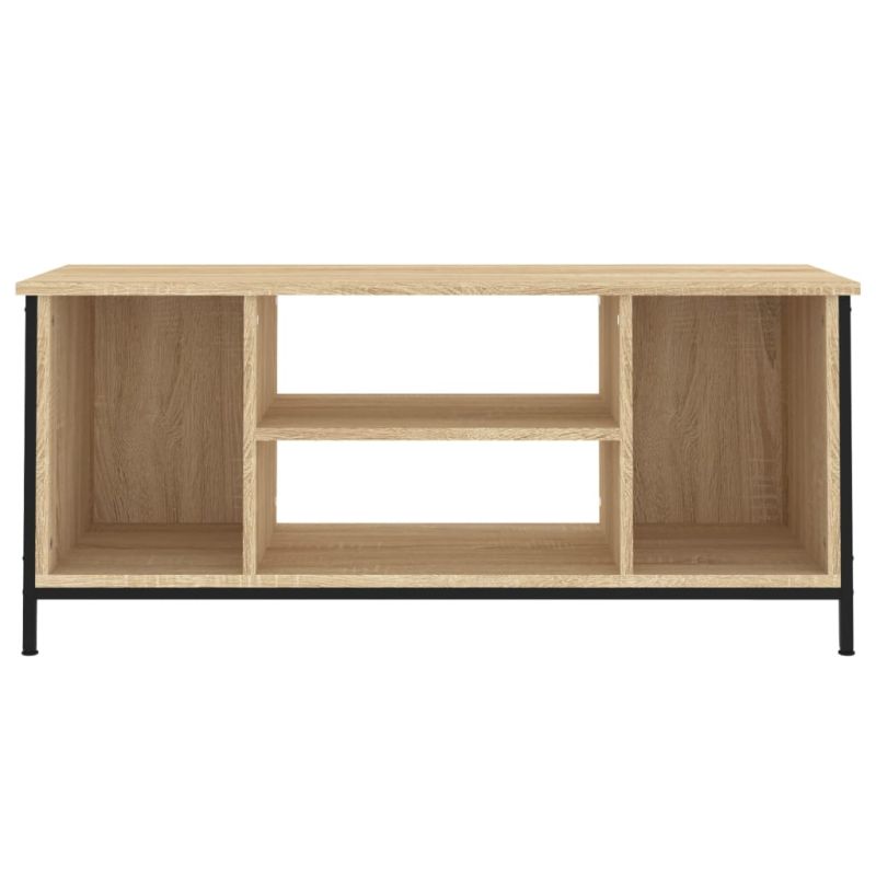 Със стилен и практичен дизайн този ТВ шкаф е предназначен да се превърне във фокусна точка на вашата стая. Издържлив материал: Инженерната дървесина е с изключително качество с гладка повърхност и също така се отличава със здравина, стабилност и устойчивост на влага.Достатъчно пространство за съхранение: Снабдена с 4 отворени отделения, ТВ поставката предлага достатъчно място за съхранение, за да държите добре организирани всички ваши списания, DVD дискове и всякакви други предмети.Здрава горна част: Горната част на ТВ шкафа осигурява здрава повърхност за излагане на декоративни предмети, фоторамки или саксийни растения.Регулируеми крака: Благодарение на регулируемите крака шкафът за мултимедийни устройства може да стои на неравни подове без затруднения. Добре е да се знае:За да бъде сглобяването възможно най-лесно, всеки продукт се доставя с ръководство.