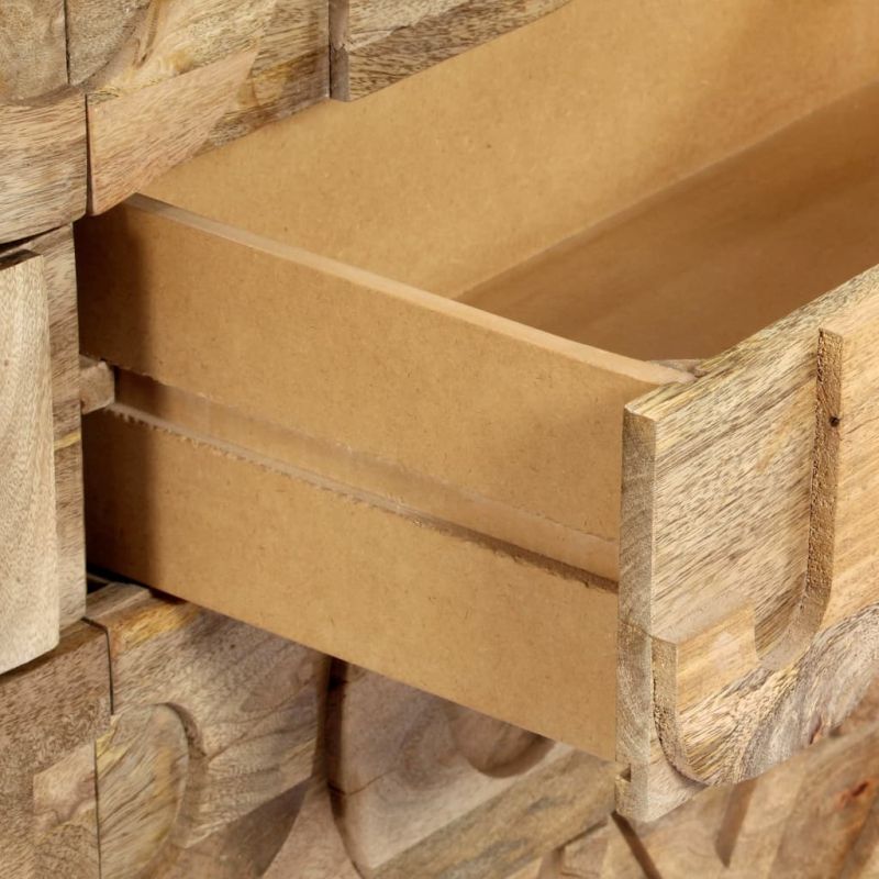 Добавете мигновено отличително допълнение към вашия дом с нашия функционален и шикозен дървен шкаф с изобразена азбука! Шкафът е ръчно изработен от мангово дърво, което е изключително стабилно и издръжливо, а изящната изработка допринася за ефектния му ретро стил. Всяка стъпка от процеса се извършва с най-голямо внимание – било то полиране, боядисване или лакиране. Красивите дървесни шарки правят всяка мебел уникална и малко по-различна от следващите. Освен това, проектиран с достатъчно място за съхранение, бюфетът държи вашите списания, книги, DVD дискове и мултимедийни устройства, както и различни други предмети, добре организирани и достъпни. Важна забележка: Цветовете варират, което прави всеки от нашите странични шкафове уникален. Доставката е на случаен принцип, което гарантира ексклузивността и индивидуалността на вашия продукт.
