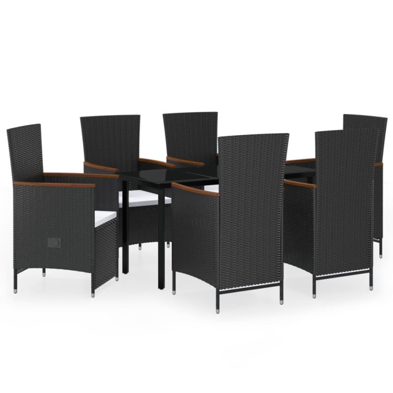 Този стилен градински трапезен комплект е предназначен да бъде фокусната точка на вашата градина или вътрешен двор! Той е чудесен избор за хранене на открито или за почивка на открито! Прахово боядисаните стоманени рамки правят масата и столовете здрави и стабилни за ежедневна употреба на открито. Благодарение на водоустойчивия PE ратан, столовете са лесни за почистване и издръжливи. Облегалката и поставката за крака могат да се регулират чрез издърпване на бутона отстрани. Благодарение на олекотената конструкция, те са лесни за преместване. Дебело подплатените възглавници на седалките също добавят допълнителен комфорт. Полиестерните калъфки не се нуждаят от много поддръжка и могат да се свалят и перат. Освен това, гладкият стъклен плот се почиства лесно с влажна кърпа и е идеален за поставяне на ястия, напитки и различни декоративни предмети. Забележка: За да удължите живота на вашите градински мебели, ви препоръчваме да ги защитите с водоустойчиво покритие. Максимално 110 кг на седалка. Съобразете се с риска от открит огън и други източници на силна топлина в близост до продукта.