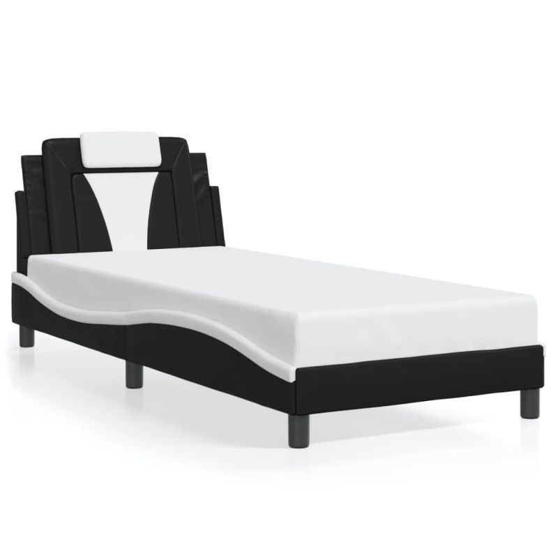 Рамка за легло Viana без матрак, черно-бяла, 90x200 см, изкуствена кожа
