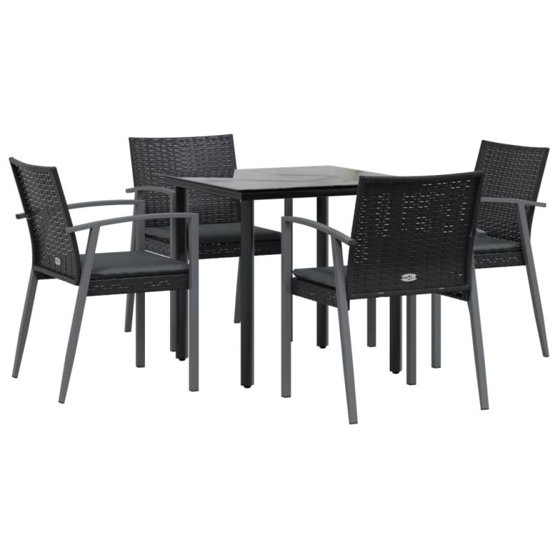 Този градински трапезен комплект, съчетаваща както стил, така и функционалност, без съмнение е предназначен да бъде акцентът на вашата градина, вътрешен двор или всяко друго жилищно пространство. Материал, устойчив на атмосферни влияния: PE ратан, известен също като полиратан, е устойчив на атмосферни влияния и лесен за почистване. Той остава красив отвън за дълъг период от време. Предлага отлично качество, удобство и естетичен вид.Здрава и стабилна рамка: Стоманените рамки правят трапезния комплект здрав и стабилен за ежедневна употреба на открито.Практичен плот: Гладкият плот на трапезната маса е изработен от закалено стъкло, което се почиства лесно с влажна кърпа. Освен това предлага отлична опора за съхранение на вашите ястия, напитки и други декоративни елементи.Удобни места за сядане: Столът за хранене е проектиран с облегалка, за да ви предложи удобно изживяване при сядане. Дебело подплатената възглавница на седалката осигурява максимален комфорт по време на седене. Забележка:За да сте сигурни, че вашите външни мебели ще останат красиви, ви препоръчваме да ги защитите с водоустойчиво покривало. Максимално 110 кг на седалка. Съобразете се с риска от открит огън и други източници на силна топлина в близост до продукта.