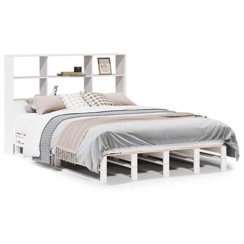 Легло с етажерка за книги, без матрак, 140x190 см, дърво масив