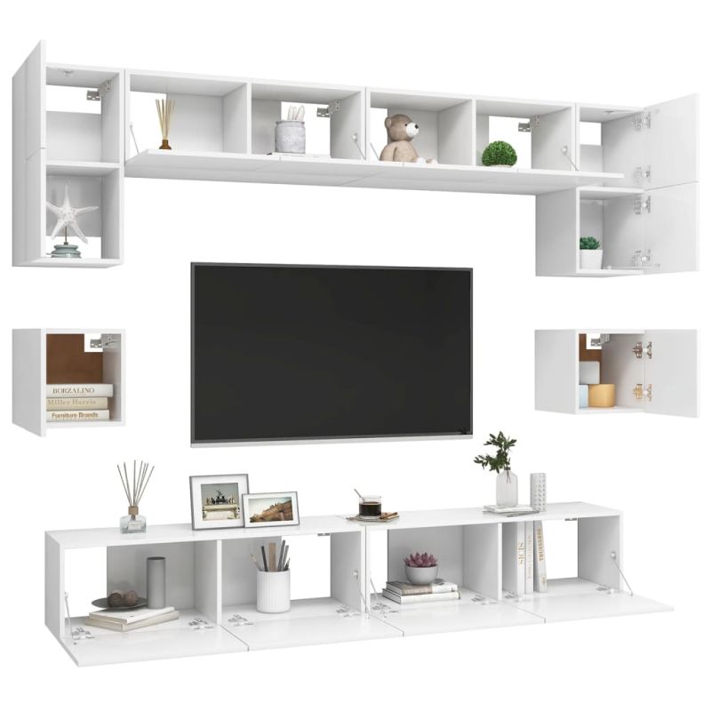 Комплект ТВ шкафове от 8 части, бял, инженерно дърво