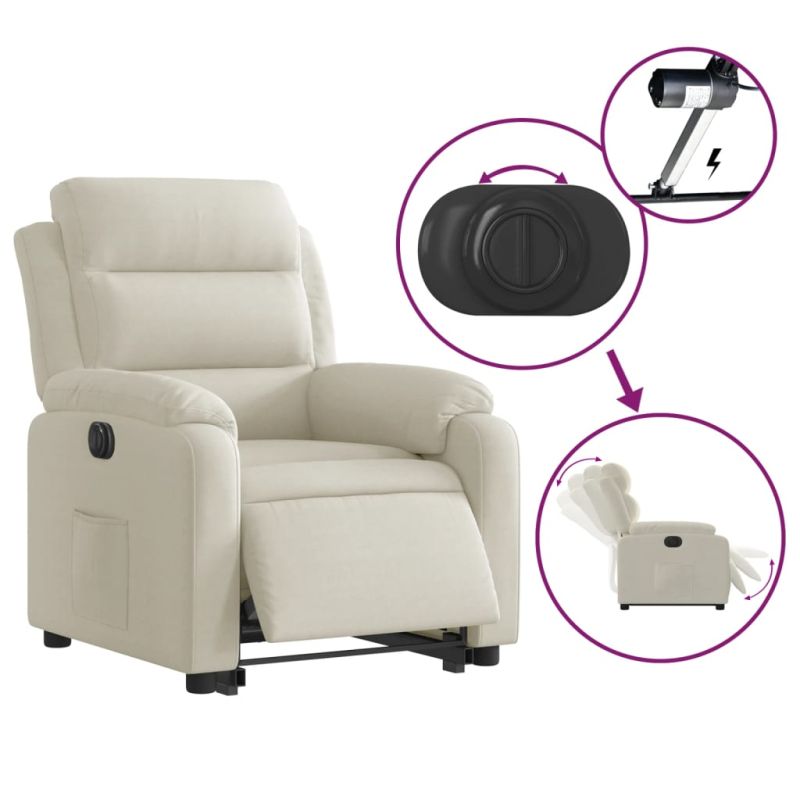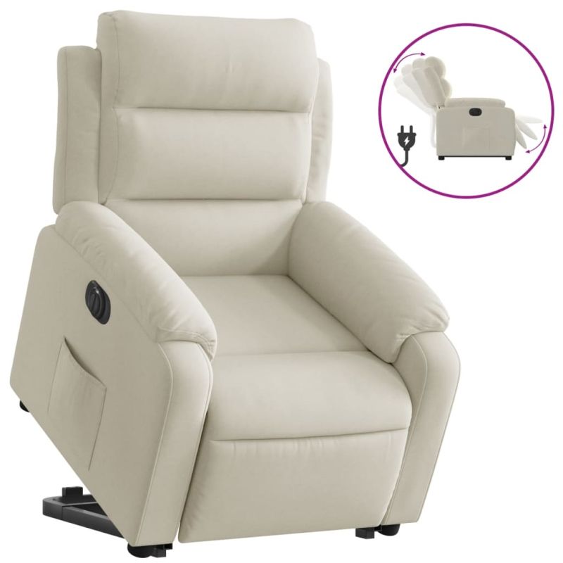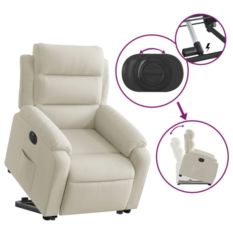 Електрически изправящ реклайнер стол, кремав, кадифе