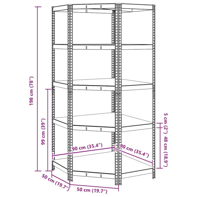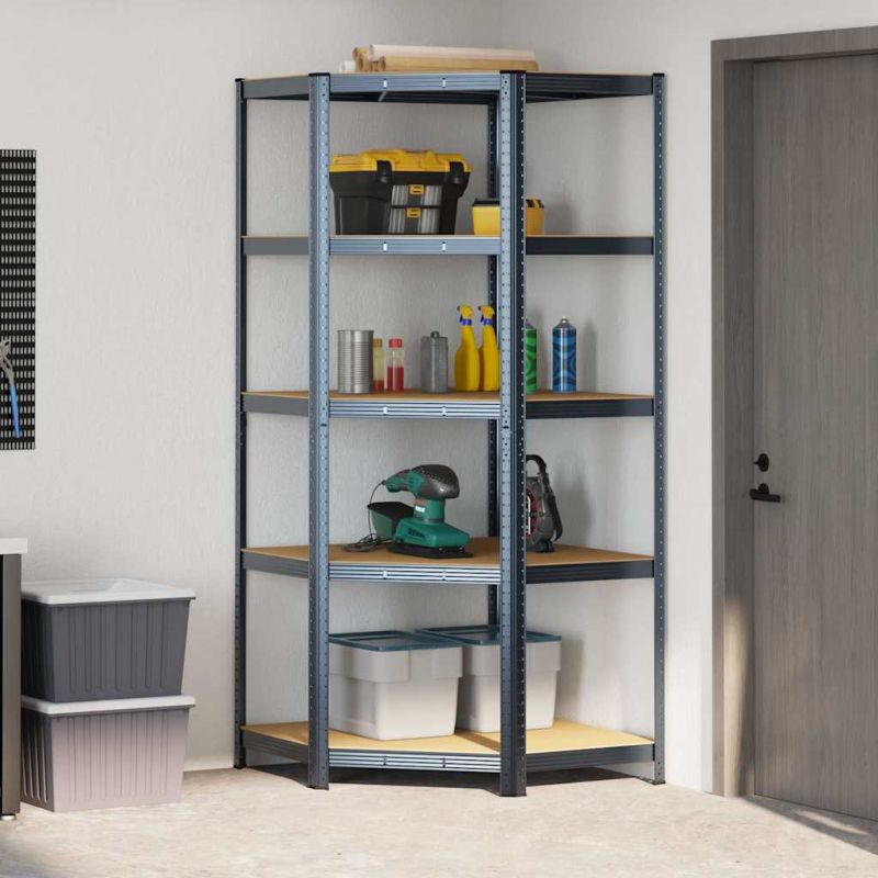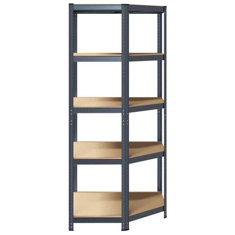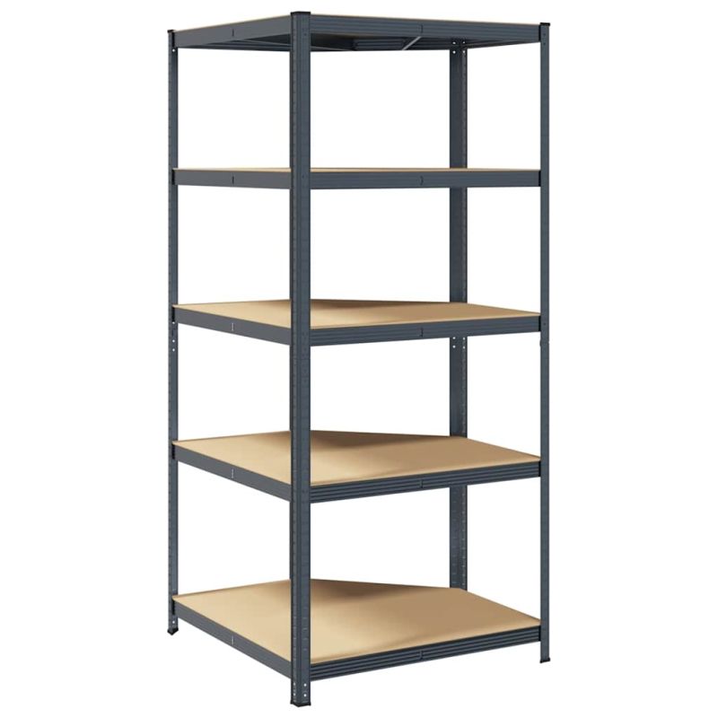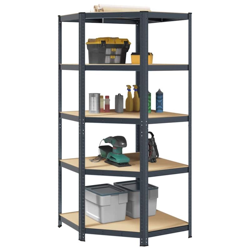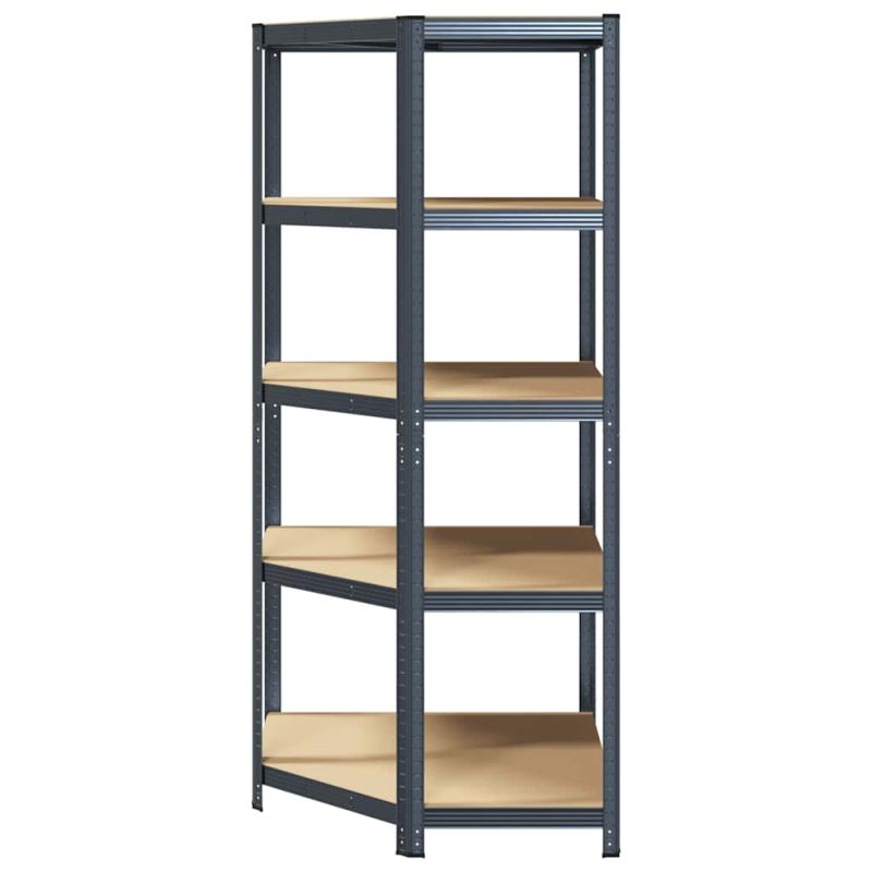 Ъглов стелаж с 5 рафта, антрацит, стомана и инженерно дърво