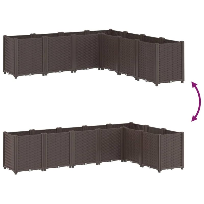 Този градински сандък е отличен избор за катерливи растения във вашата градина, вътрешен двор и тераса. Издръжлив материал: Полипропиленът е популярна пластмаса, която също е един от най-използваните материали при мебелите за открито. Той е лек, здрав и устойчив на удар.Щедър капацитет: Външната кашпа осигурява много място за отглеждане на всички ваши зеленчуци, цветя и други растения.Практичен дизайн: Идеалният долен слой помага за задържане на влагата и позволява лесен дренаж. Модулен дизайн: Този сандък се състои от 7 кутии за цветя, които могат свободно да се комбинират според вашите нужди.Красива визия на ратан: Плантерът за вътрешен двор е проектиран с визия на ратан, внасяйки елегантен чар във вашето жилищно пространство.