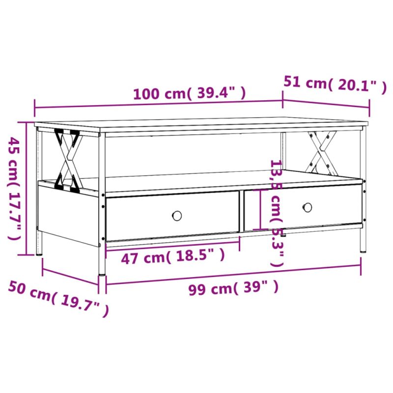 Добавете нотка елегантност към вашия хол с тази стилна масичка за кафе. Издръжлив материал: Страничната маса е изработена от инженерно дърво. Инженерната дървесина е с изключително качество с гладка повърхност и също така се отличава със здравина, стабилност и устойчивост на влага.Достатъчно място за съхранение: Тази холна масичка предлага 2 чекмеджета и 1 рафт с достатъчно място за съхранение, където да държите вашите принадлежности добре организирани и подръка.Стабилен плот: Стабилният плот на холната маса е идеален за поставяне на вашите напитки, храна и други декоративни елементи.Здрава рамка: Металната рамка на тази холна маса осигурява здравина и стабилност.