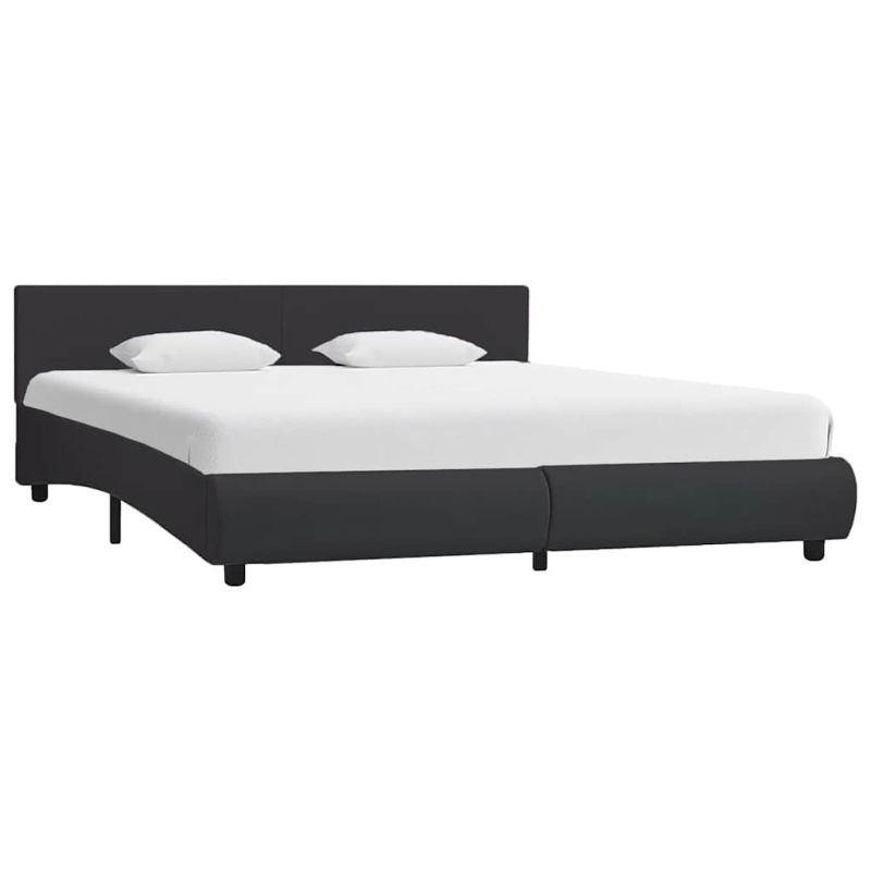 Рамка за легло с LED, черна, изкуствена кожа, 160x200 cм