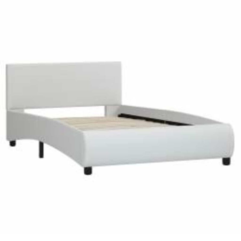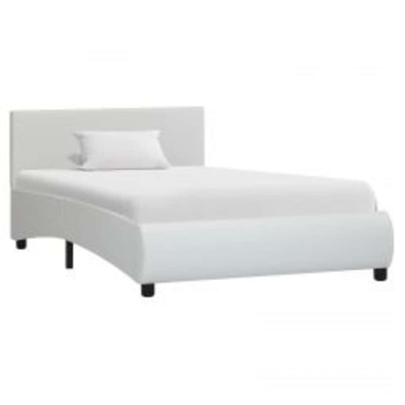 Рамка за легло с LED, бяла, изкуствена кожа, 90x200 cм