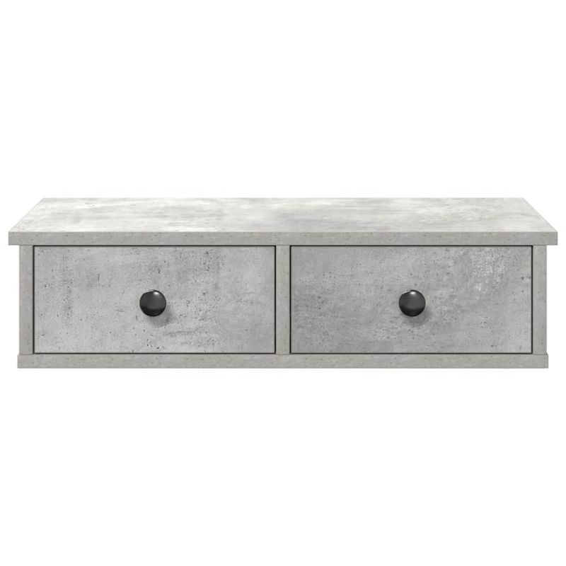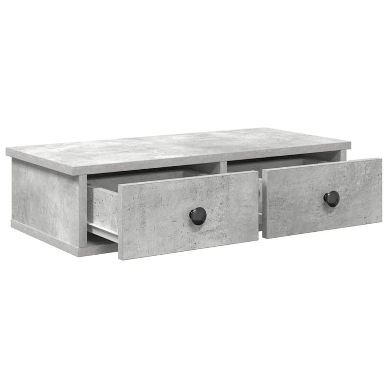 Стенен рафт с чекмеджета бетонно сив 60x28x15см инженерно дърво