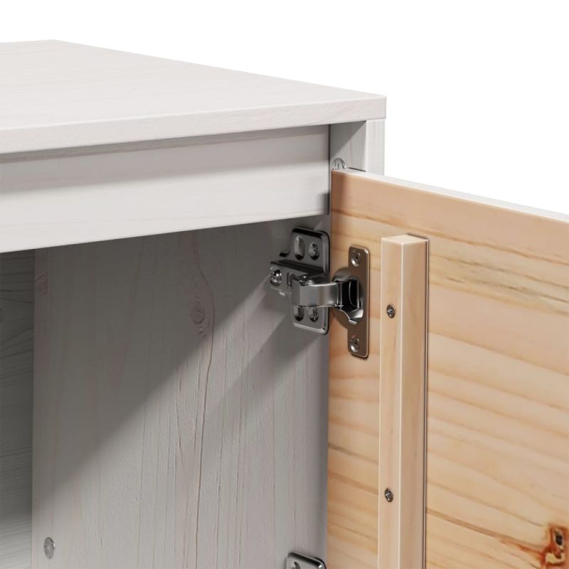 Този модерен дървен ТВ шкаф се отличава с елегантен и стилен дизайн, предназначен да бъде декоративно и практично допълнение към декора на вашата стая. Масивна борова дървесина: Масивната борова дървесина е красив естествен материал. Боровата дървесина е с продълговати шарки, а чеповете придават на материала характерния му рустик вид.Достатъчно място за съхранение: Този ТВ модул с 4 отделения и 4 врати предлага достатъчно място за съхранение, където да държите принадлежностите си добре организирани и подръка.Функция за декорация: Здравият плот е идеалното място за нареждане на саксийни растения, снимки с рамки и други декоративни елементи. Забележка:Всеки продукт се доставя с ръководство за сглобяване в кашона за лесно сглобяване.