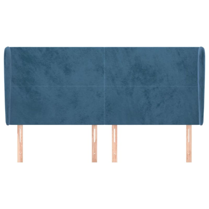 Горна табла за легло с уши, тъмносиня, 203x23x118/128см, кадифе