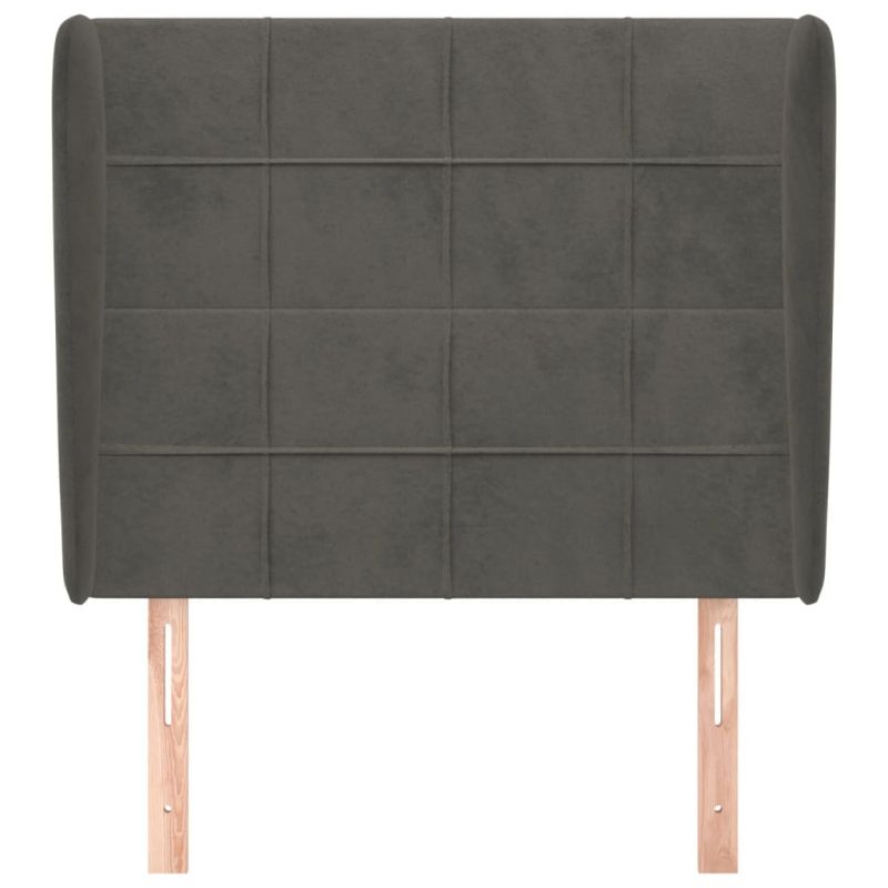 Горна табла за легло с уши, тъмносива, 93x23x118/128 см, кадифе