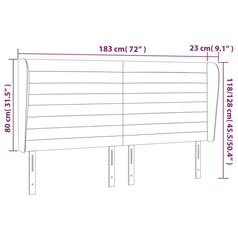 Горна табла за легло с уши, черна, 183x23x118/128 см, плат