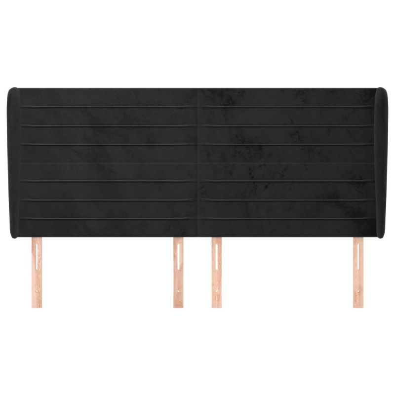 Горна табла за легло с уши, черна, 163x23x118/128 см, кадифе