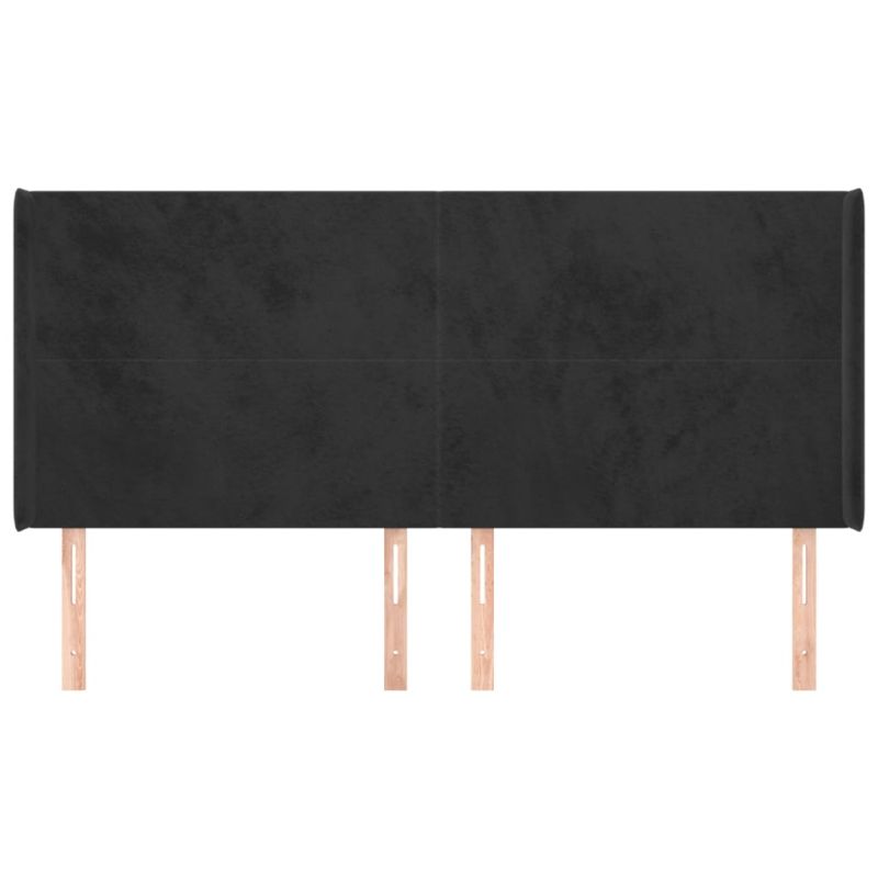 Горна табла за легло с уши, черна, 183x16x118/128 см, кадифе