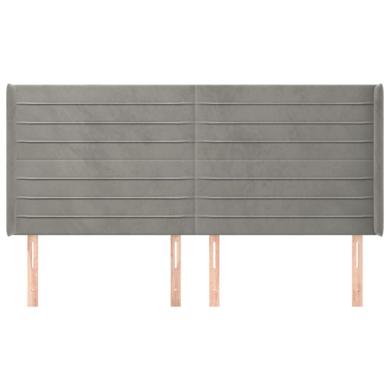 Горна табла за легло с уши, светлосива,163x16x118/128см, кадифе