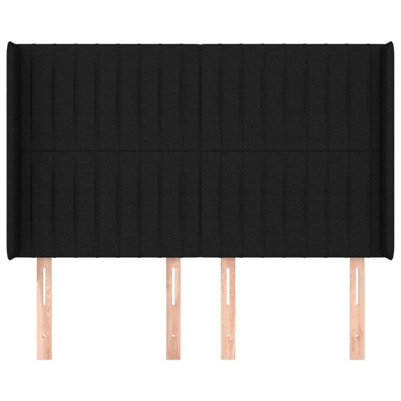 Горна табла за легло с уши, черна, 147x16x118/128 см, плат