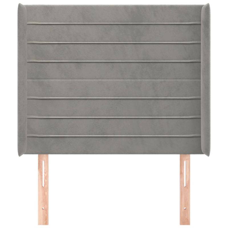 Горна табла за легло с уши, светлосива,103x16x118/128см, кадифе