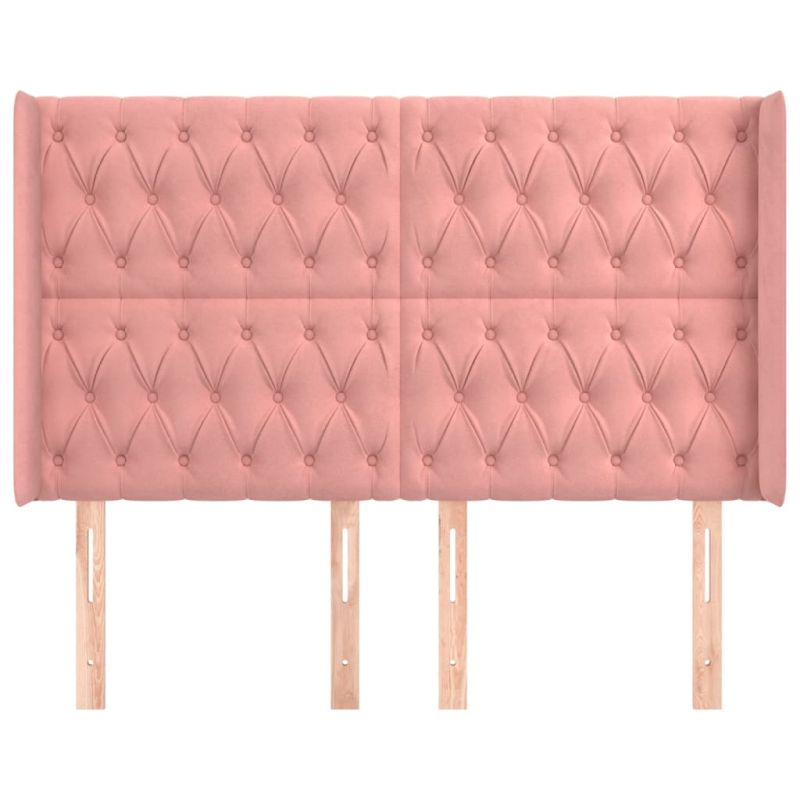 Горна табла за легло с уши, розова, 163x16x118/128 см, кадифе