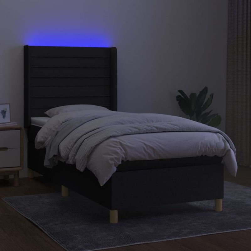Боксспринг легло с матрак и LED, черна, 90x200 см, плат