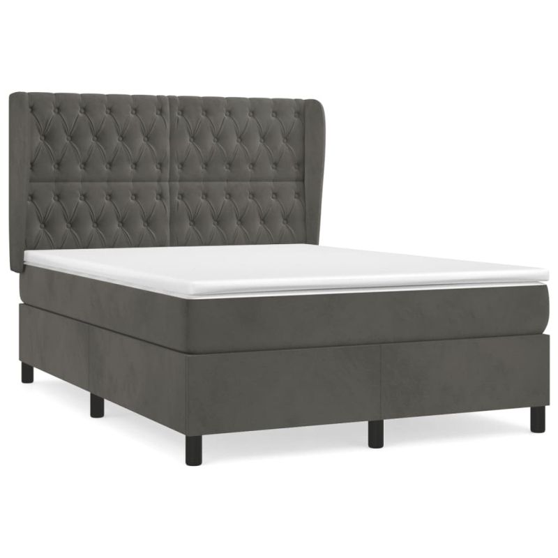 Боксспринг легло с матрак, тъмносиво, 140x190 см, кадифе