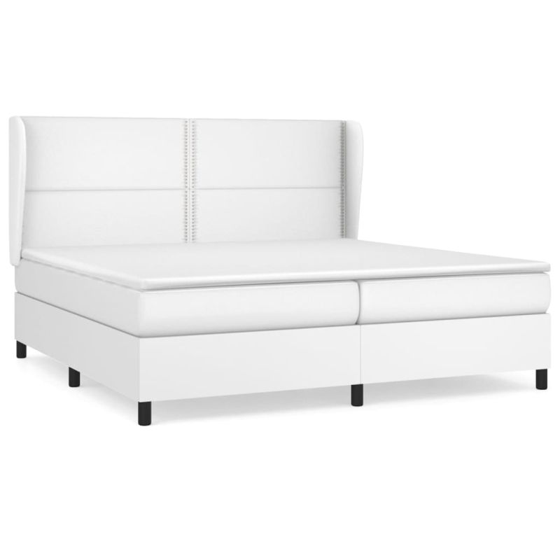 Начало Мебели Легла и аксесоари Легла и рамки за легла Боксспринг легло с матрак, бяло, 200x200 см, изкуствена кожа