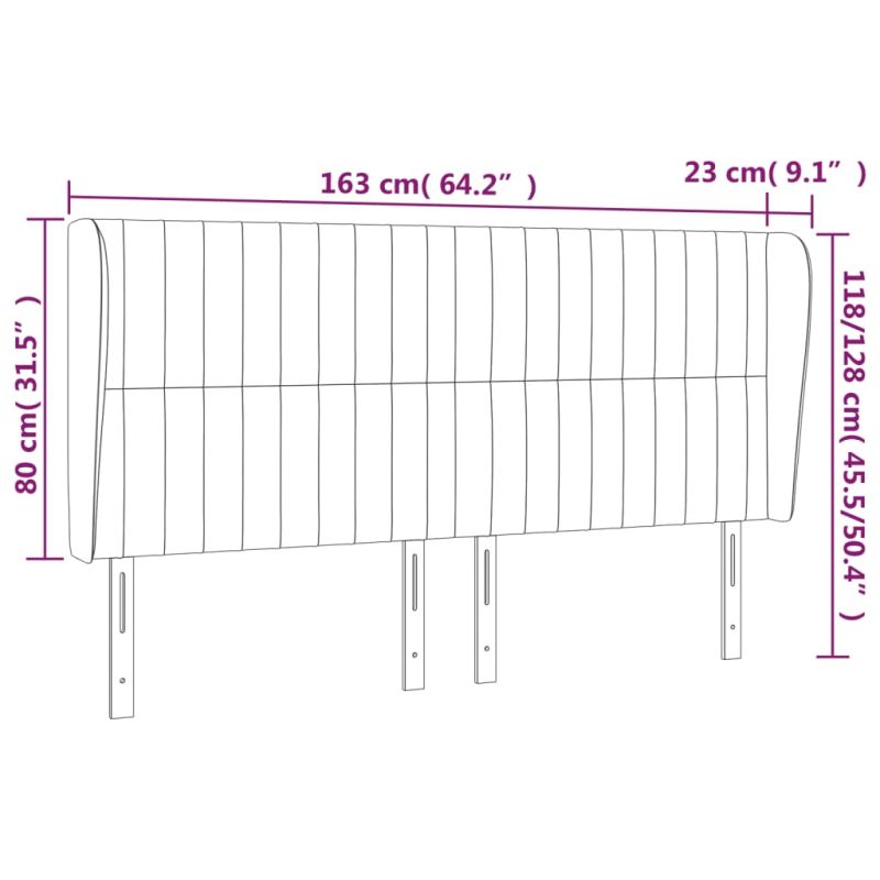 Горна табла за легло с уши, светлосива, 163x23x118/128 см, плат