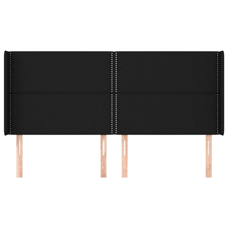 Горна табла за легло с уши, черна, 203x16x118/128 см, плат