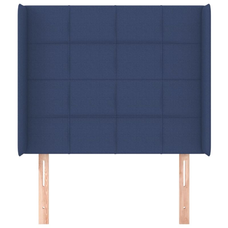 Горна табла за легло с уши, синя, 93x16x118/128 см, плат