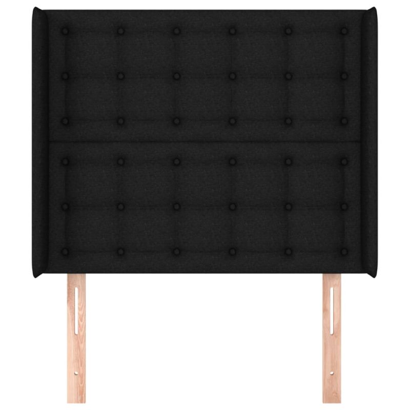 Горна табла за легло с уши, черна, 103x16x118/128 см, плат
