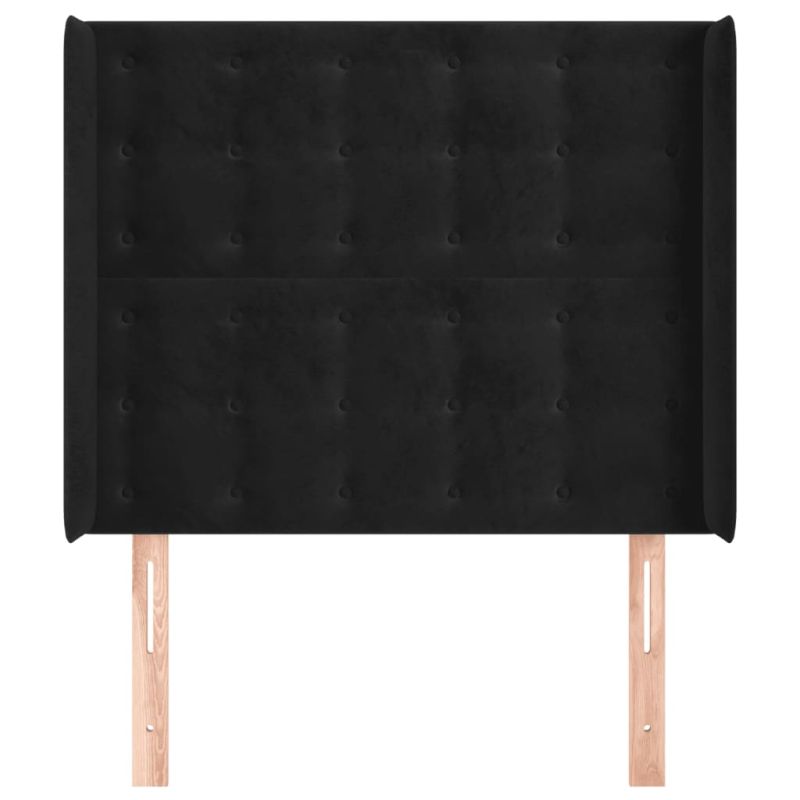 Горна табла за легло с уши, черна, 93x16x118/128 см, кадифе