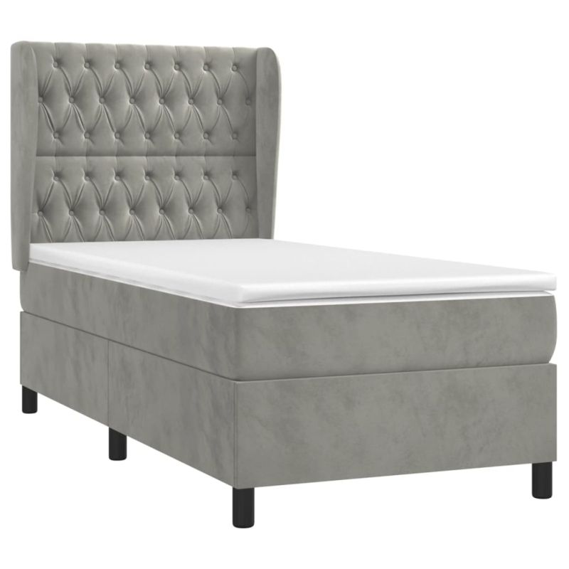 Боксспринг легло с матрак, светлосиво, 80x200 см, кадифе