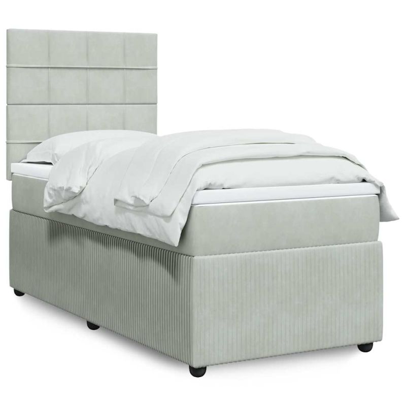 Боксспринг легло с матрак, светлосиво, 100x200 см, кадифе