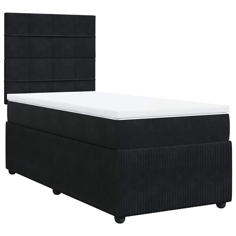 Боксспринг легло с матрак, черно, 80x200 см, кадифе
