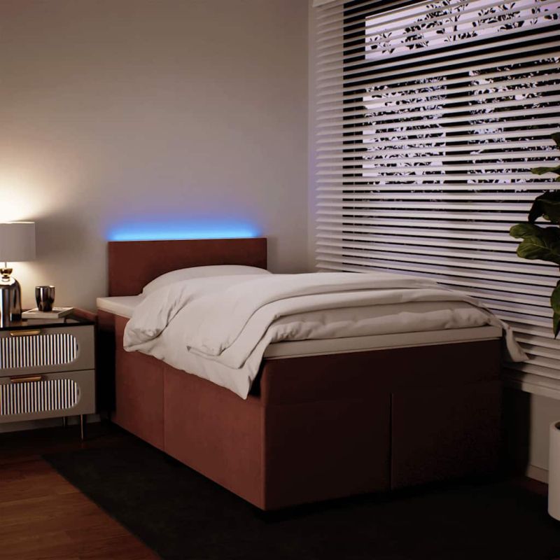 Използвайте това боксспринг легло, за да се насладите на спокоен сън! Предлага ви максимален релакс и приятен сън. Мек и удобен материал: Кадифената материя се отличава с мека и гладка повърхност, която създава приятно усещане върху кожата, като ви носи топлина и максимален комфорт.Матрак с джоб пружини: Този матрак с джоб пружини има индивидуални пружини с джобчета, които работят независимо, за да осигурят персонализирана опора, като реагират само на натиска във всяка област. Този дизайн предотвратява "свличането" към средата на матрака и намалява прехвърлянето на движение в сравнение с традиционните матраци с отворени намотки. Всяка покет пружина поддържа тялото индивидуално.LED светлини за приятна атмосфера: Това легло разполага с LED светлини, които могат лесно да се регулират, за да се създаде персонализирано светлинно шоу. Можете да персонализирате режимите, цветовете и яркостта, за да подобрите атмосферата на вашето вътрешно пространство.Удобен горен матрак: Този топ матрак подобрява опората и комфорта със своята мека, дишаща повърхност, като същевременно удължава живота на вашия матрак. Подвижният му калъф позволява лесно изпиране, което прави поддръжката лесна. Добре е да се знае:Продуктът има USB конектор, който изисква сертифициран 5V USB захранващ източник (не е включен).От хигиенни съображения матракът не може да бъде върнат, ако опаковката е отстранена или отворена.Само частта със символ на ножица може да бъде изрязана и само частта с USB ще продължи да функционира както преди. Този продукт се захранва с DC 5V, но сертифицираният 5V USB източник на захранване не е включен в комплекта. По-високото напрежение може да доведе до прегряване на устройството и да доведе до повреда на устройството и потенциален риск от прегряване и пожар.