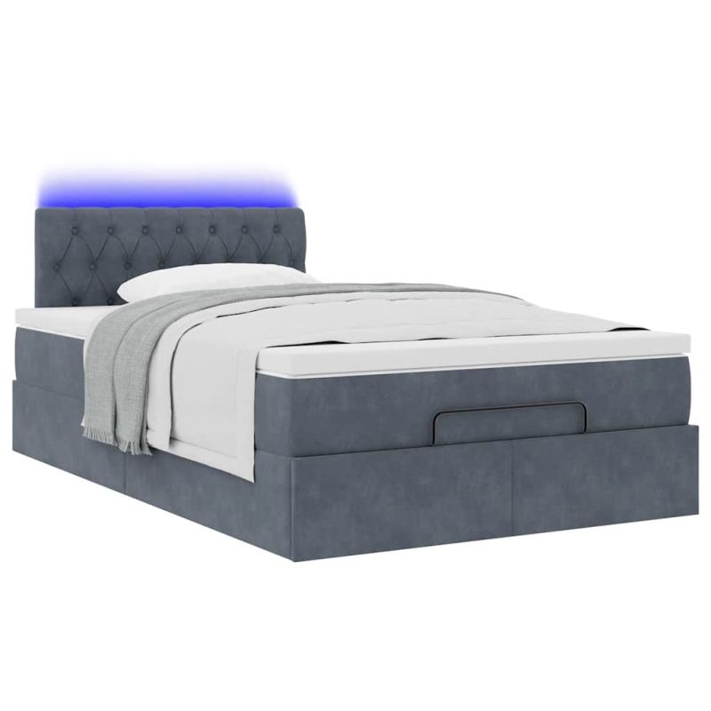 Османска легло с матрак и LED, тъмносиво, 120x200 см, кадифе