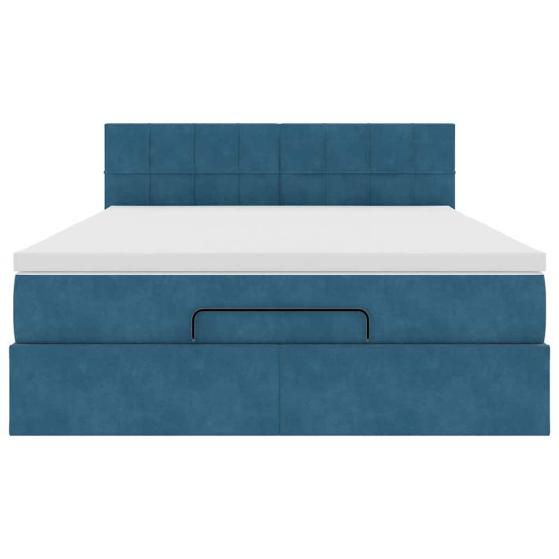 Османска легло с матрак и LED, тъмносиньо, 140x190 см, кадифе