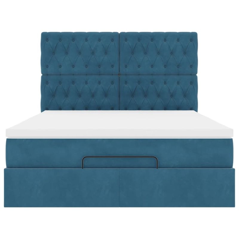 Османска легло с матраци и LED, тъмносиньо, 140x190 см, кадифе