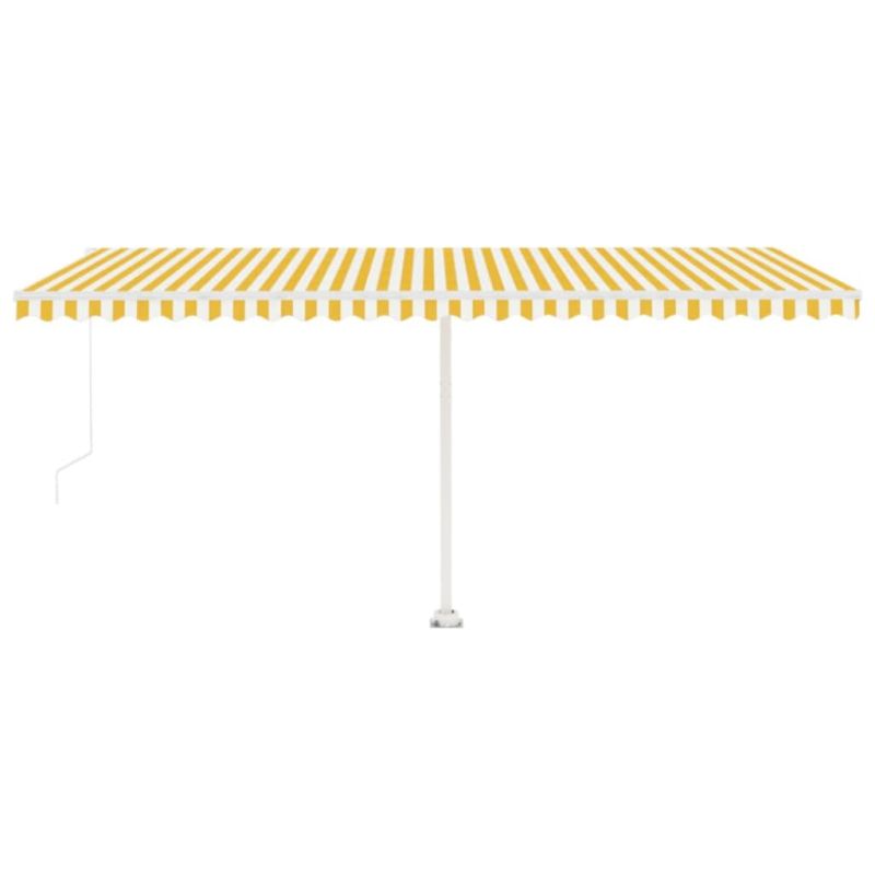Ръчно прибиращ се сенник с LED, 500x300 см, жълто и бяло