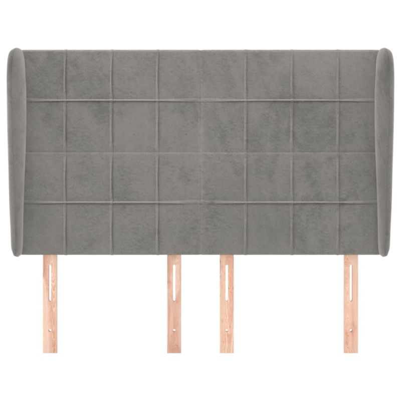 Горна табла за легло с уши,светлосива, 147x23x118/128 см кадифе