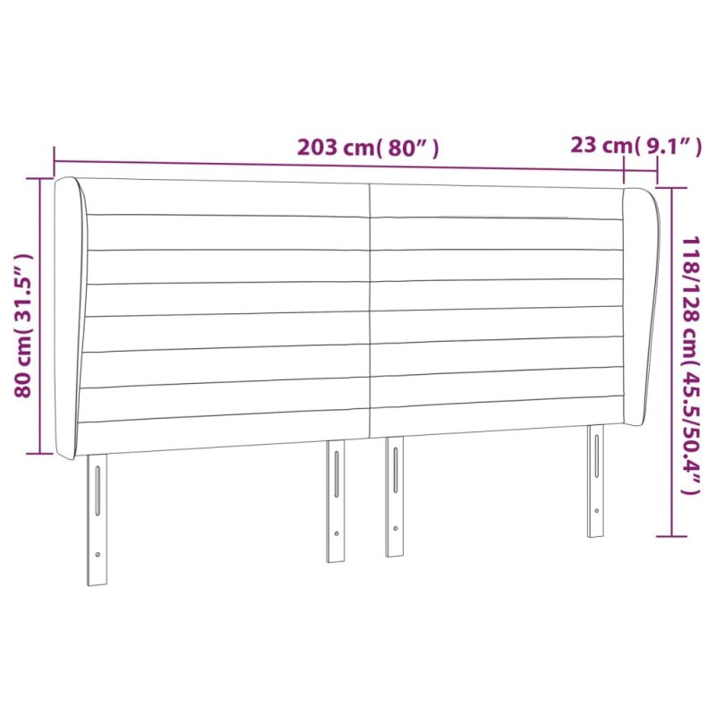Горна табла за легло с уши, таупе, 203x23x118/128 см, плат