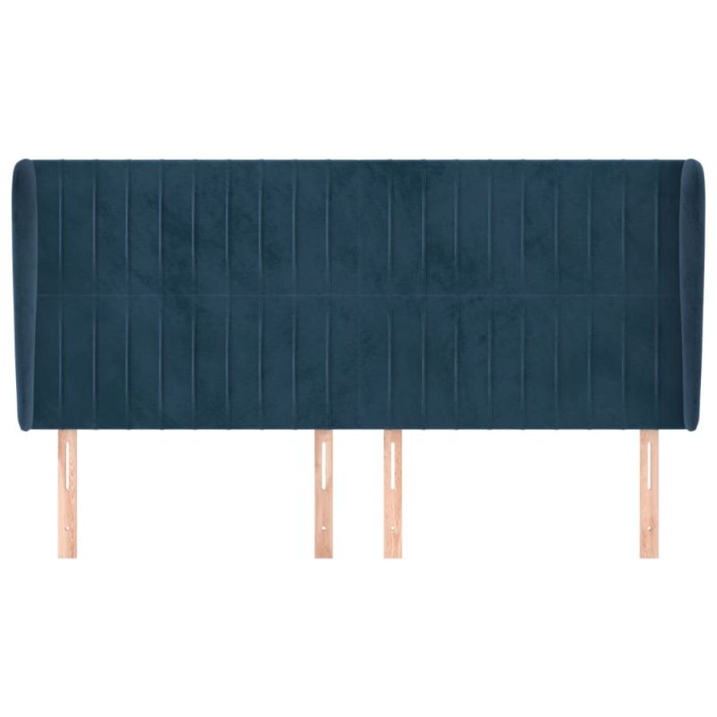 Горна табла за легло с уши, тъмносиня, 183x23x118/128 см кадифе