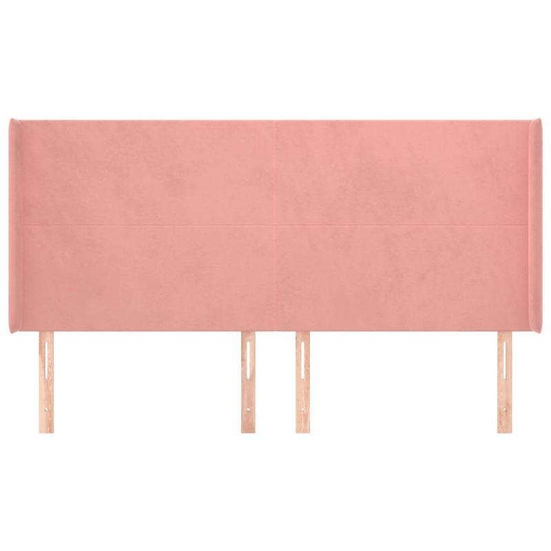 Горна табла за легло с уши, розова, 183x16x118/128 см, кадифе
