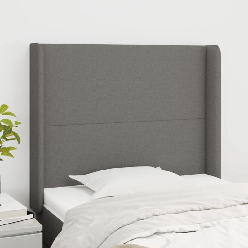 Горна табла за легло с уши, тъмносива, 93x16x118/128 см, плат