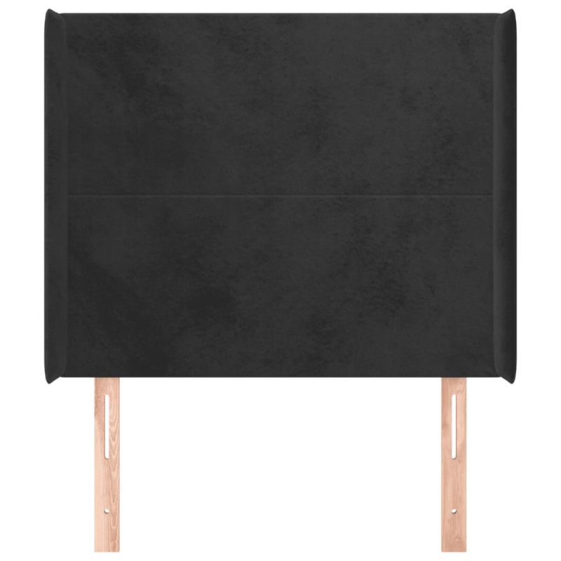 Горна табла за легло с уши, черна, 103x16x118/128 см, кадифе